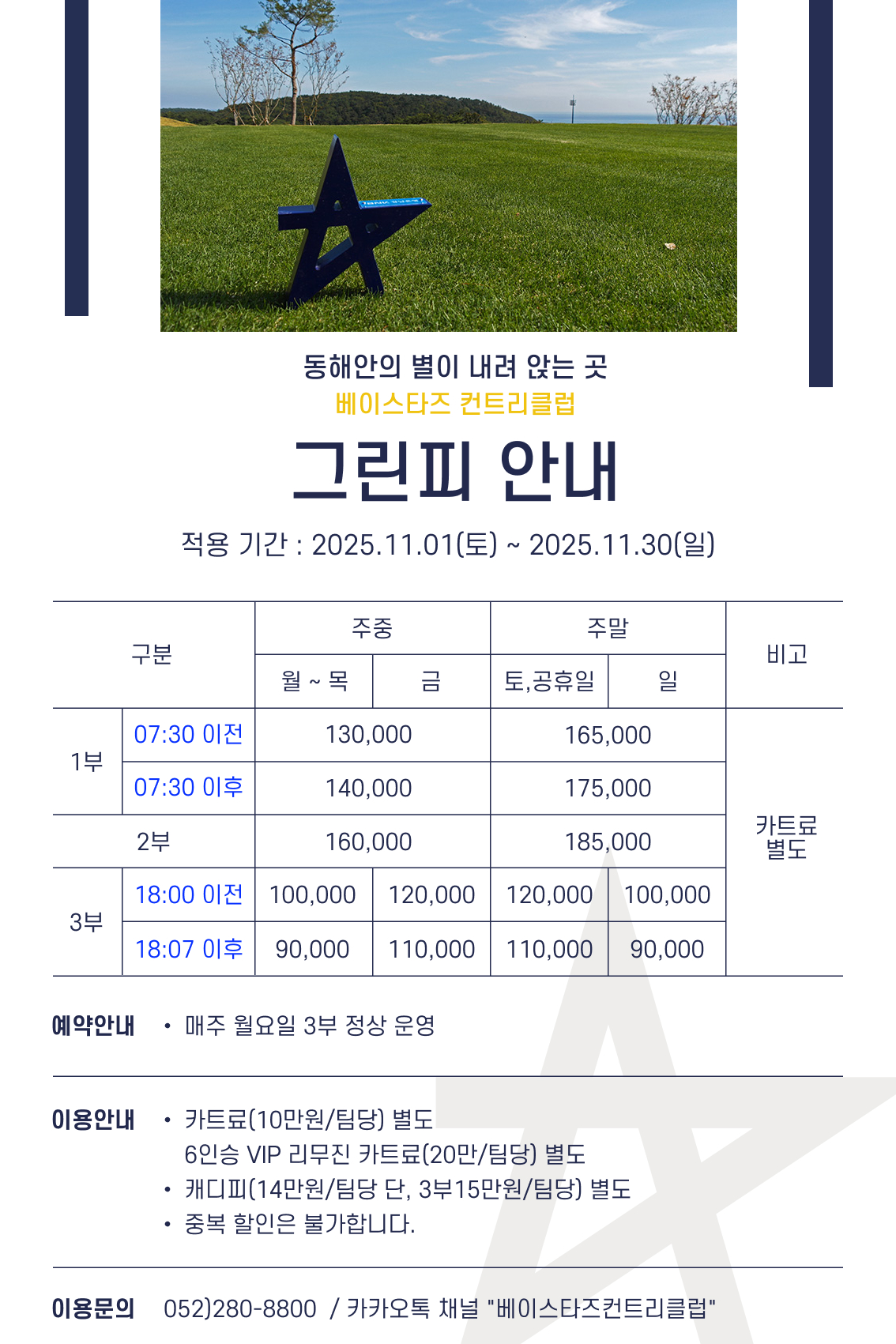 2025.11.01(토) ~ 2025.11.30(일)까지 그린피 안내